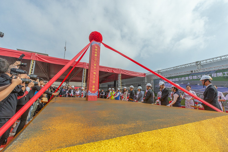 隨後,總統與現場嘉賓共同進行開工祝禱及動土儀式,包括立法院副院長蔡其昌、外交通部長林佳龍、民航局長林國顯、立法委員洪慈庸、沈智慧及臺中市副市長楊瓊瓔等均出席是項活動。