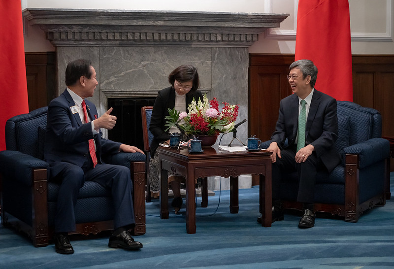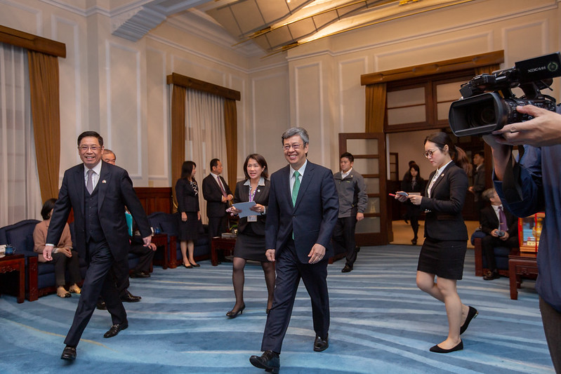 訪賓一行由總統府國策顧問顏志發、內政部長徐國勇陪同,前來總統府拜會副總統。