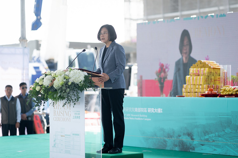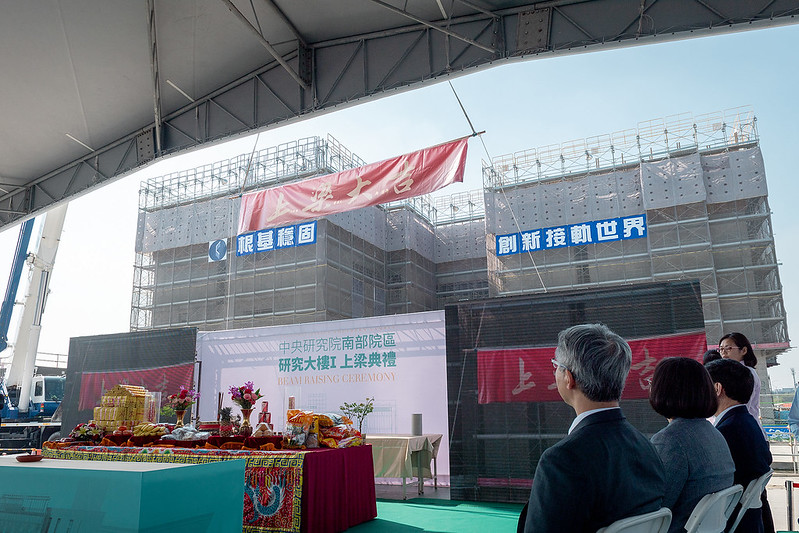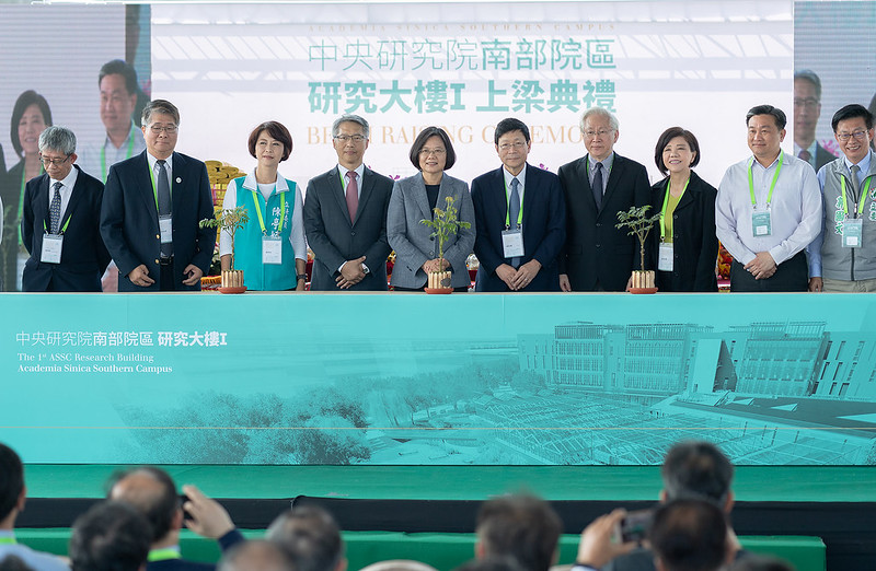 蔡英文總統今(25)日上午出席「中研院南部院區基地第一研究大樓上梁典禮」,說明南部院區的興建是落實區域均衡的重大進展,未來進一步結合周邊的產、官、學、研單位,形成聚落效應,提升臺灣整體經濟創新能量;也期許所有參與團隊務必全力以赴,讓南部院區如期如質完工,成為南部區域學術研究及產業發展的重鎮。