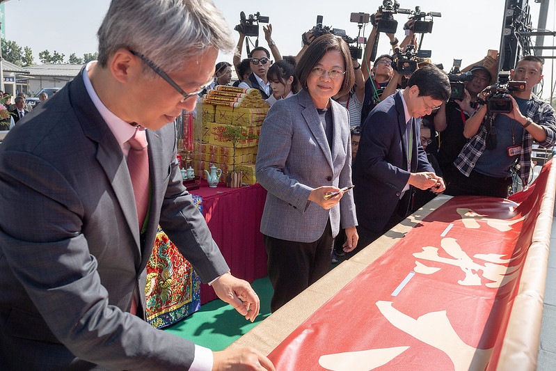 隨後,總統也與現場貴賓一同祈福祝禱,並進行上梁儀式及植樹。包括行政院政務委員吳政忠、中央研究院院長廖俊智及臺南市副市長王時思等亦出席是項活動。