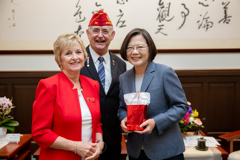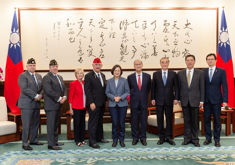 總統感謝美國退伍軍團協會對於這些共同的信念,始終採取支持的態度;也謝謝協會常透過具體的行動力挺中華民國臺灣,包括通過決議文,敦促美國政府出售防衛性武器,以及在每年的年會中邀請我國輔導會推派代表參加。