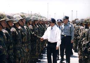 陳總統水扁先生今天訪視馬祖地區,除參觀相關軍經設施外,並與戍守官兵共進午餐,提前向他們祝賀端午佳節愉快。