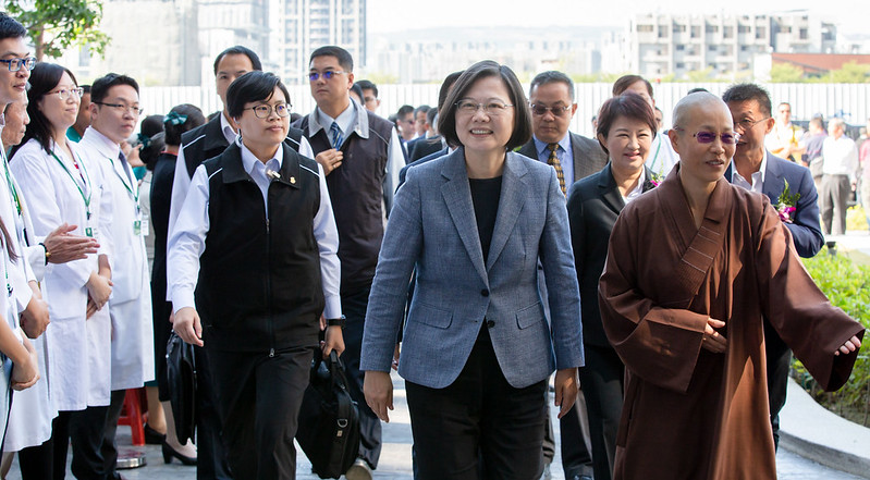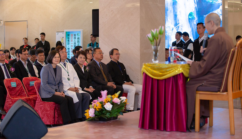 隨後,總統與現場貴賓共同剪綵,包括正德慈善基金會董事長演音法師、臺中佛教正德醫院院長王德芳、衛生福利部次長何啟功及臺中市長盧秀燕等亦出席是項行程。