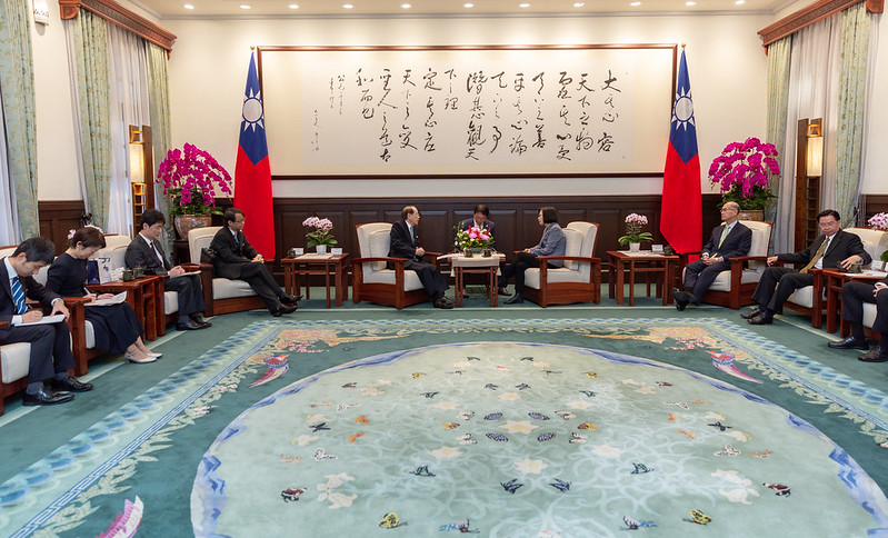 訪賓一行尚包括日本台灣交流協會台北事務所代表泉裕泰等,由外交部長吳釗燮陪同,前來總統府晉見總統,國家安全會議秘書長李大維也在座。