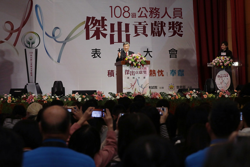副總統致詞時表示,非常高興及榮幸代表總統參加「公務人員傑出貢獻獎表揚大會」,這對公務人員來說是一個至高的榮譽,能夠獲獎,代表得獎者們都是為了國家全力以赴,並提出重要的革新方案,創造了卓越的成果,或是在自己的專業崗位上,完成了重要的貢獻,促進機關團隊的優異合作,讓國家社會不斷往前進步。