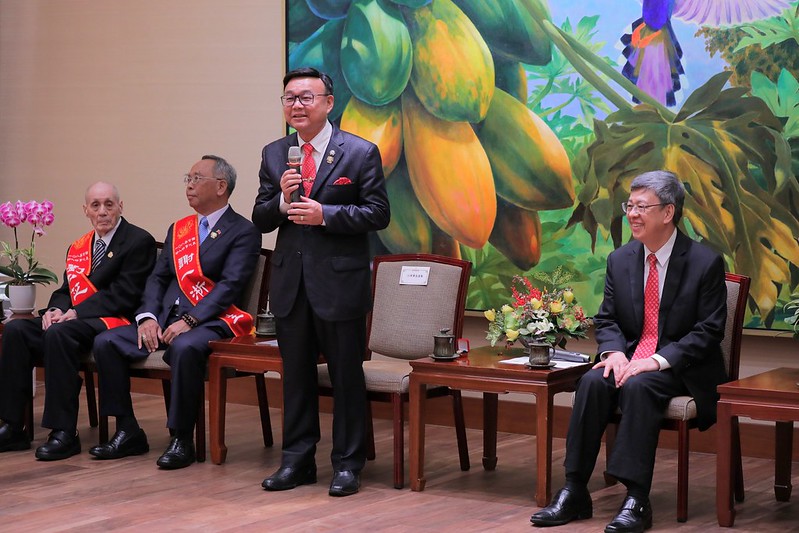 訪賓一行由中華民國表揚好人好事運動協會理事長江達隆率領、內政部主任秘書陳茂春陪同,前來總統府拜會副總統。