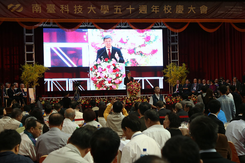 副總統致詞時表示,非常榮幸受邀參加「南臺科技大學50週年校慶」,看到眾多賓客及師生臉上滿滿的笑容,真的讓他感受到南臺科大蓬勃的朝氣與活力。