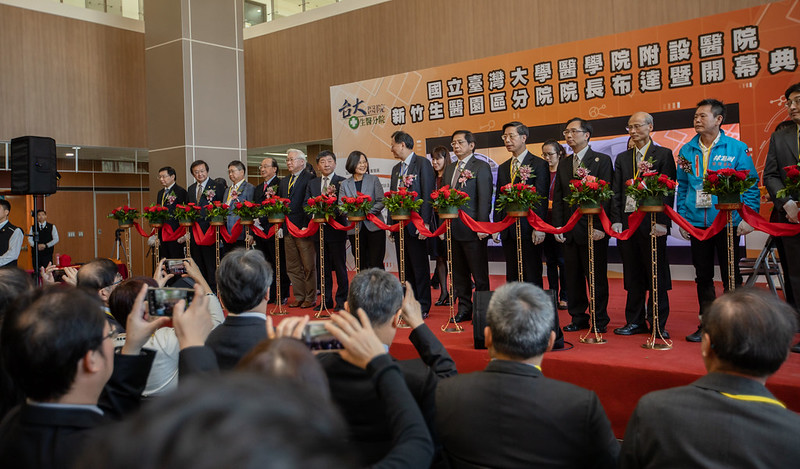 隨後,總統與現場貴賓共同進行剪綵儀式。包括行政院政務委員吳政忠、衛生福利部長陳時中、新竹縣長楊文科、立法委員柯建銘、林為洲、邱泰源、臺大醫院新竹生醫園區分院院長余忠仁、臺大醫院院長陳石池、國立臺灣大學校長管中閔及臺大醫學院院長倪衍玄等亦出席是項活動。