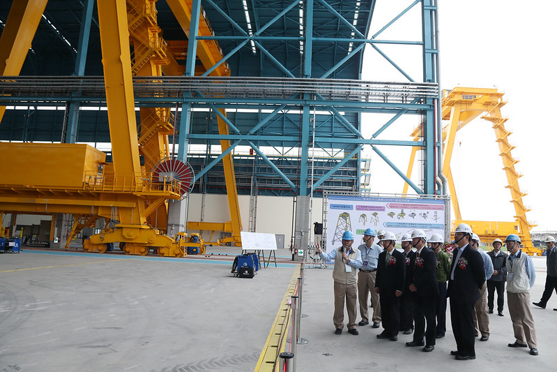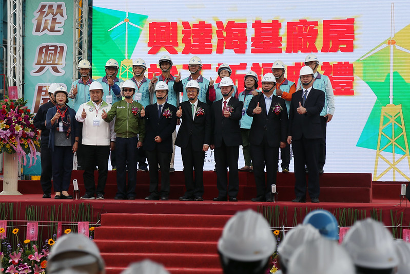 最後,副總統感謝「興達海基」及全體同仁的努力,期望未來業務蒸蒸日上,成為臺灣、亞洲及世界的典範廠房之一。隨後,副總統也與現場貴賓一同進行竣工儀式,並在興達海洋基礎股份有限公司董事長王亞洲的陪同下導覽廠房。