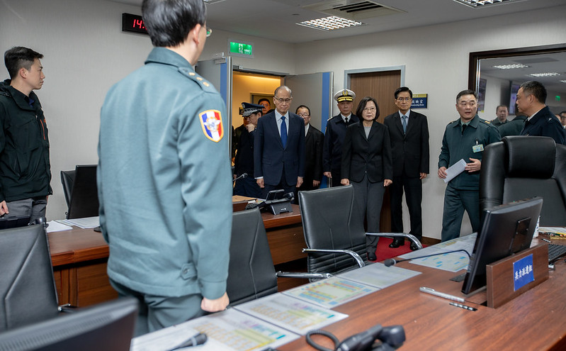 蔡英文總統今(3)日下午前往國防部及衡山指揮所視導,請國軍同仁必須確保民心軍心的穩定、臺海周邊安全、裝備檢整完善,並強調國防事務如常操作,不可一日懈怠。