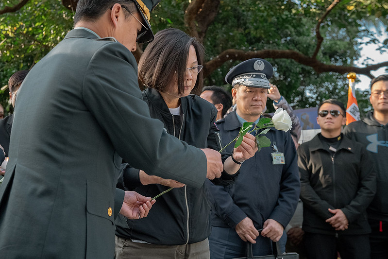 總統重申,我們非常感謝官士兵在這個當下,都能夠堅守崗位,保衛國家,維護臺海的安全,穩定民心跟士氣;她也感謝今天來這裡致意的民眾,他們對總長及罹難同仁所表達的感謝與敬意,讓我們都深刻的感受到人民對國軍的支持。