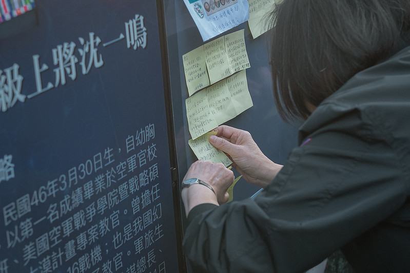 隨後,總統驅車前往臺北賓館0102殉職將士追思會場,除與軍方高階將領依序獻上蠟燭與鮮花悼念外,並將雷達站士官兵的寄語,貼在沈參謀總長及韓總士官長追思牆上,傳達空軍第一雷達分隊全體官兵對殉職將士的不捨。