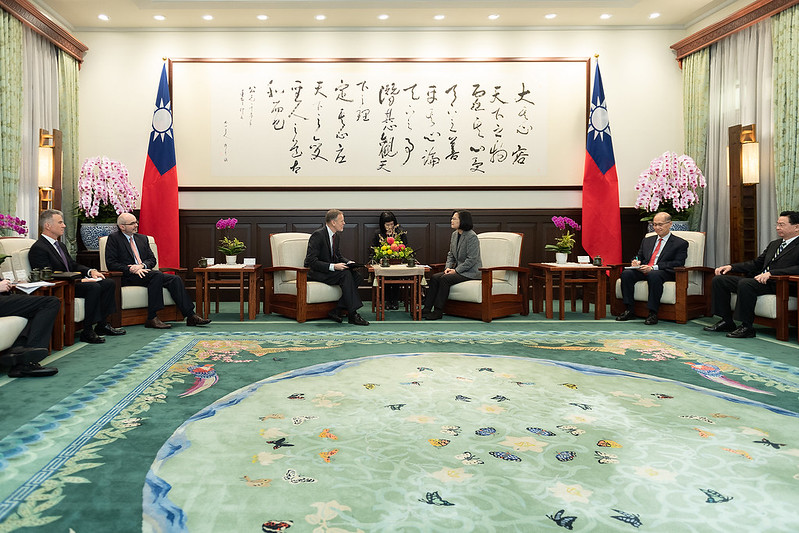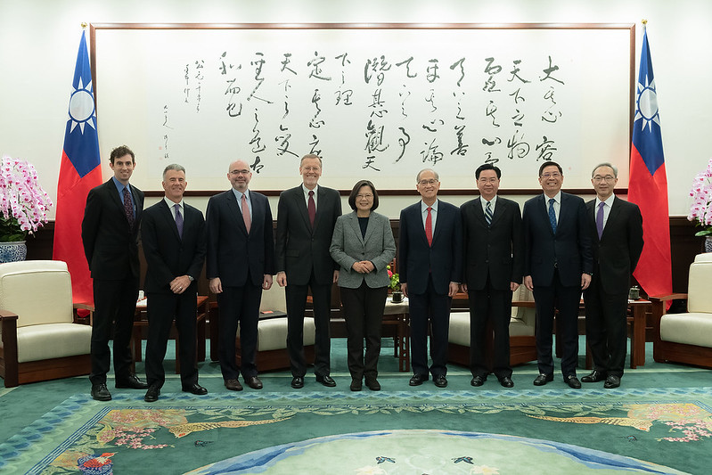訪賓一行由外交部長吳釗燮陪同,前來總統府晉見總統,國家安全會議秘書長李大維也在座。