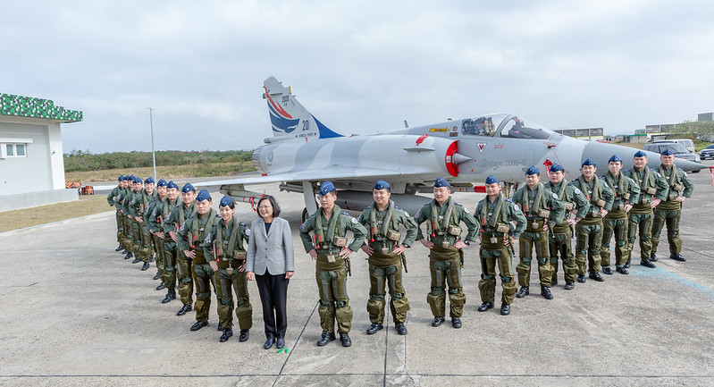 隨後,總統與現場貴賓共同進行新建營舍啟用剪綵儀式,觀看5架幻象2000戰機以大雁隊形衝場致意,並前往視導第48換訓隊及空勤寢室生活區,實地瞭解官兵寢室、重訓室及交誼廳等生活設施。