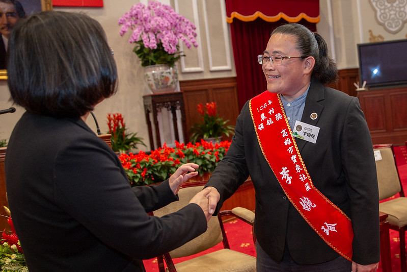 總統接著逐一表揚得獎者事蹟,她說,像是黃文詣創辦人發起「返青富民聯盟」,把客庄的農業、美食跟文化打造成特色景點,她到苗栗臺三線的時候,也到田園餐桌跟這些年輕朋友一起吃飯,真的非常有特色;田佳玲小姐也是返鄉青年,積極推動阿里山鄉茶葉種植的有機認證,讓整個茶葉種植能撐過轉型期的陣痛,讓農村邁向永續。