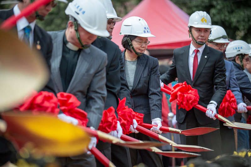 最後,總統再次肯定市府和馬偕團隊的努力。她說,新竹市是一座年輕又有活力的城市,未來的新竹市馬偕兒童醫院,也將提供一條龍的婦幼醫療服務,相信一定可以守護市民健康,並祝福工程如質如期完工。隨後,總統與現場貴賓共同進行動土儀式。