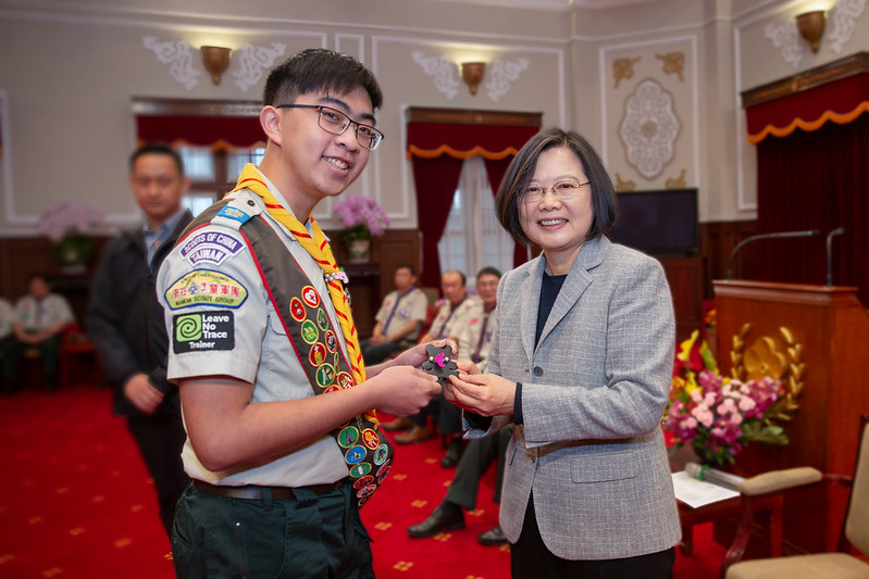 總統提到,童軍總會在林右昌理事長接任後,舉辦很多國際性的童軍活動,展現童軍跨領域的服務精神,也加深我國童軍在國際上的正面形象。透過童軍夥伴的努力,臺灣也已經順利爭取到2021年第27屆亞太區童軍領袖會議的主辦權。總統也特別勉勵大家一定要全力以赴,展現出最好的成果。