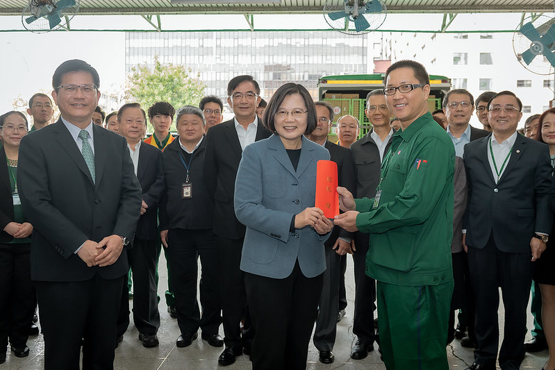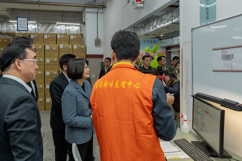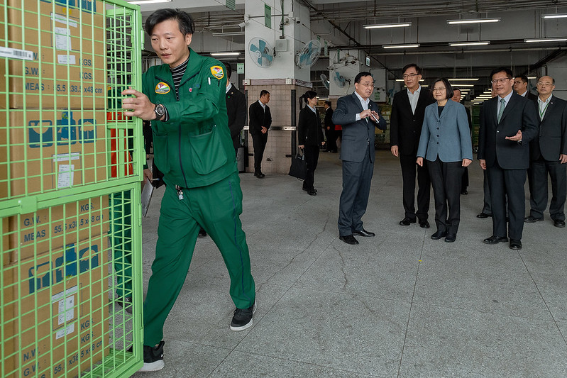 隨後,總統在林佳龍部長陪同下,視察防疫物資儲存、倉管及配送作業,並頒贈加菜金,慰勉中華郵政同仁這陣子的辛勞。