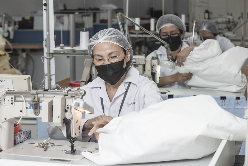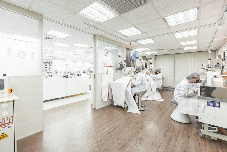 總統提到,在疫情開始的初期,工作同仁就告訴她,我們的防護衣跟隔離衣,尤其是防護衣,都是國外進口生產的,當時也盤點了國內整個庫存的情況。經過這段時間,今天再到這裡,真的很高興我們防護衣跟隔離衣的國家隊也已經成形了,對大家來說,這是一個令人振奮的消息。尤其是防護衣P3等級,從原料到製成最後的產品,全部百分之百在臺灣生產。對我們來說,這是一項非常重要的戰略物資,可以百分之百在國內生產,讓我們感到非常的心安及感謝。