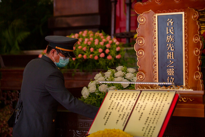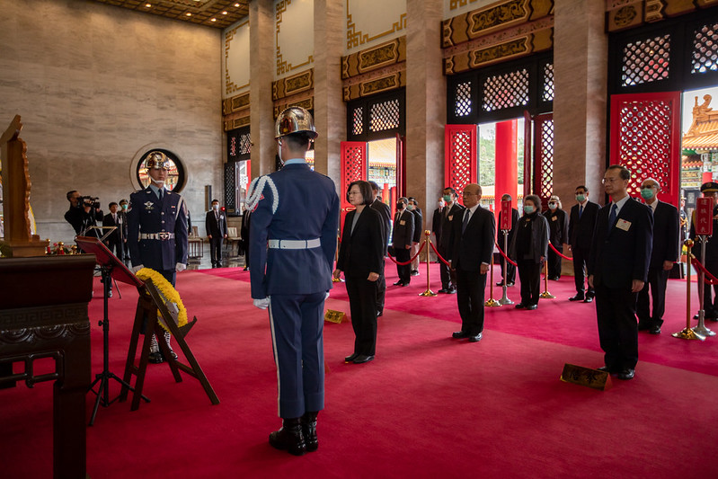 「109年向先祖暨忠烈殉職人員致祭」於今(29)日上午9時在臺北市圓山國民革命忠烈祠隆重舉行,蔡英文總統親臨主祭,行政院長蘇貞昌、立法院長游錫堃、司法院長許宗力、考試院長伍錦霖、監察院副院長孫大川陪祭。