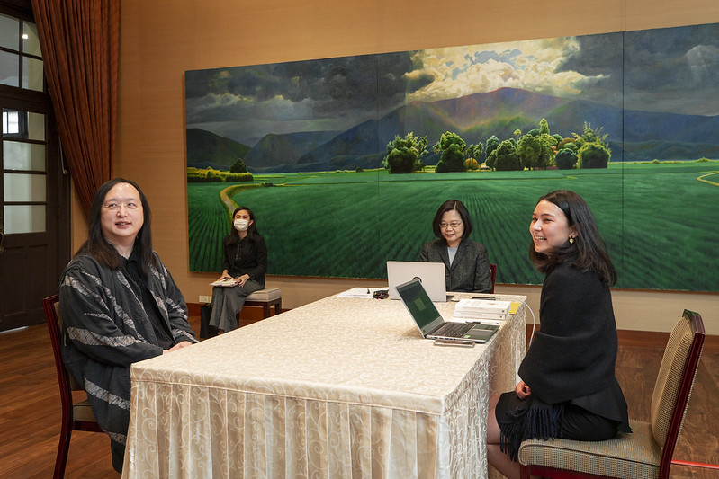 今日接見,包括行政院政務委員唐鳳亦在座。
