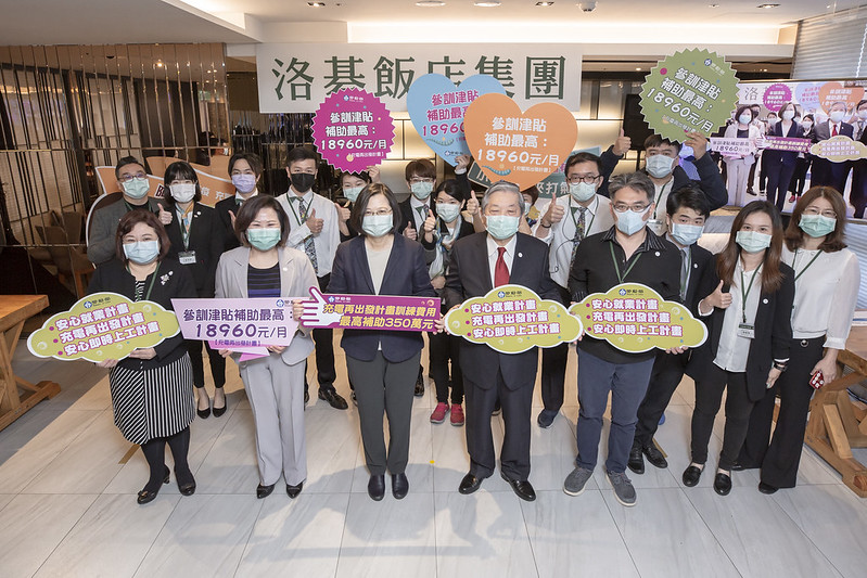 蔡英文總統今(16)日上午訪視「勞動部充電再出發訓練計畫-洛碁大飯店」時表示,政府雙管齊下,一方面提供產業所需要的紓困貸款,讓企業主在金流上不會受到很大的衝擊;另一方面,也希望員工可以安定就業。因此集結了行政院及勞動部的資源,有一連串的方案,讓員工不會擔心大家的工作機會在這段疫情期間受到影響。對於勞工的生活、就業等每一個面向,政府都盡其可能地提供協助,讓大家可以安定,能夠安心。