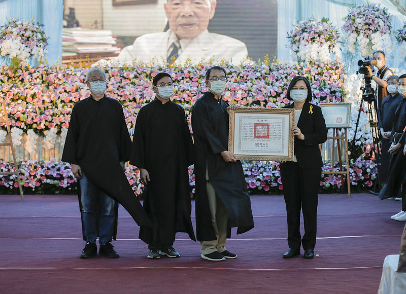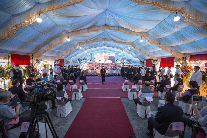 總統抵達會場後,親自頒發褒揚令,由謝春梅醫師五子謝其欣先生代表接受,隨後在司儀引領下於靈前獻花籃,並行三鞠躬禮致祭。
