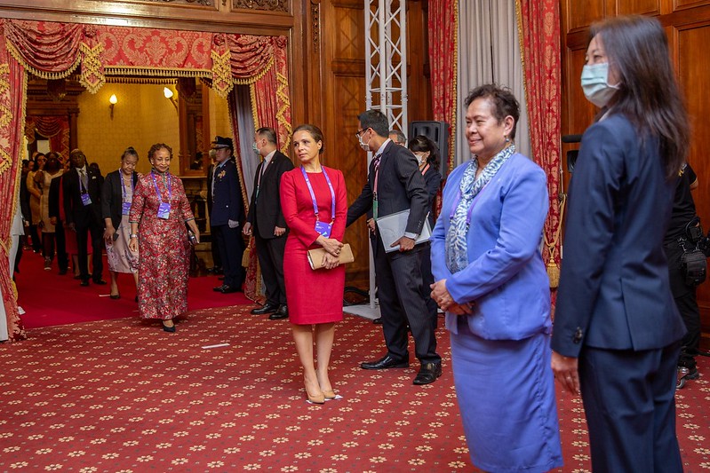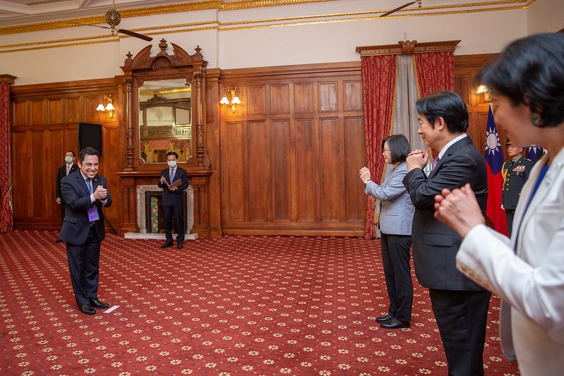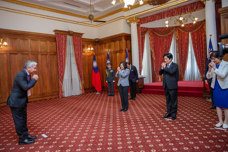 今日前來致賀15國駐臺使節包括:使節團團長暨尼加拉瓜共和國達比亞(William M. Tapia Alemán)大使、聖克里斯多福及尼維斯哈菁絲(Jasmine Elise Huggins)大使、巴拉圭共和國柏馬紹(Marcial Bobadilla Guillén)大使、帛琉共和國歐克麗(Dilmei Louisa Olkeriil)大使、海地共和國庫珀(Rachel Coupaud)大使、貝里斯賀黛安(Diane C. Haylock)大使、吐瓦魯國涂莉梅(Limasene Teatu)大使、聖露西亞勞倫特(Edwin Laurent)大使、馬紹爾群島共和國艾芮瓊(Neijon R. Edwards)大使、瓜地馬拉共和國葛梅斯(Willy Alberto Gómez Tirado)大使、聖文森及格瑞那丁柏安卓(Andrea Clare Bowman)大使、諾魯共和國凱法斯(Jarden Kephas)大使、宏都拉斯共和國寶蒂絲妲(Eny Yamileth Bautista Guevara)大使、教廷臨時代辦佳安道(Monsignor Arnaldo Catalan)及史瓦帝尼王國臨時代辦庫內內(Lindiwe Cynthia Trizah Kunene);駐臺機構包括:美國在臺協會臺北辦事處酈英傑(William Brent Christensen)處長、日本台灣交流協會-台北事務所泉裕泰(Hiroyasu Izumi)代表、歐洲經貿辦事處高哲夫(Filip Grzegorzewski)處長、新加坡駐臺北商務辦事處葉偉傑(Yip Wei Kiat)代表、澳洲辦事處高戈銳(Gary Richard Cowan)代表、駐臺北韓國代表部姜永勳(Young-hoon Kang)代表、法國在臺協會公孫孟(Jean-François Casabonne-Masonnave)主任、德國在臺協會王子陶(Thomas Prinz)代表、英國在臺辦事處唐凱琳(Catherine Elizabeth Nettleton)代表及加拿大駐臺北貿易辦事處芮喬丹(Jordan Reeves)代表等;國際組織代表包括:亞蔬—世界蔬菜中心沃培睿(Marco Wopereis)主任及亞洲太平洋地區糧食肥料技術中心張淑賢(Su-San Chang)主任。