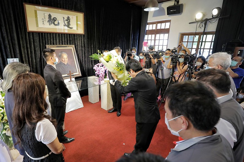 副總統抵達後,首先至鍾肇政先生靈前獻花、行禮致意,隨後在鍾老先生的兒子鍾延威及兒媳蔣絜安陪同下,觀看鍾老生平事略之文物簡介。