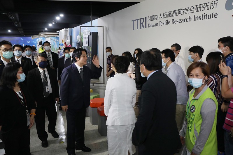 賴清德副總統今(3)日下午至新北市土城區參訪「紡織產業綜合研究所」時,肯定紡織所在國家需要時,能夠發揮功能,他也期許未來能「打出臺灣品牌」,讓臺灣成為防疫戰略物資的生產重鎮。