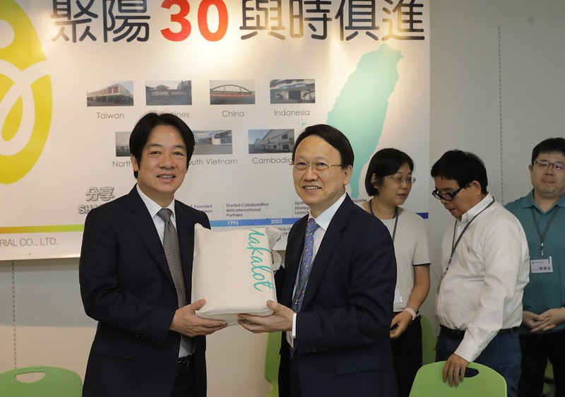 賴清德副總統今(9)日上午前往嘉義參訪「聚陽實業公司」,肯定該公司提供後勤資源幫助國家成功防疫,並期勉國家隊繼續精進,讓臺灣成為全球防疫物資生產重鎮,用臺灣品牌打國際盃,帶動臺灣經濟、造福國人。