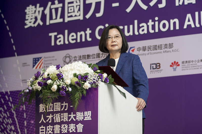 蔡英文總統今(12)日上午出席「人才循環大聯盟計畫白皮書發表會」,強調政府將致力培育更多具「雙語能力」及「數位技能」的臺灣人才,並鬆綁相關管制,從全世界招募更多樣化之優秀人才,把臺灣打造為國際人才中心,提升國際競爭力,迎接新時代的各種挑戰。