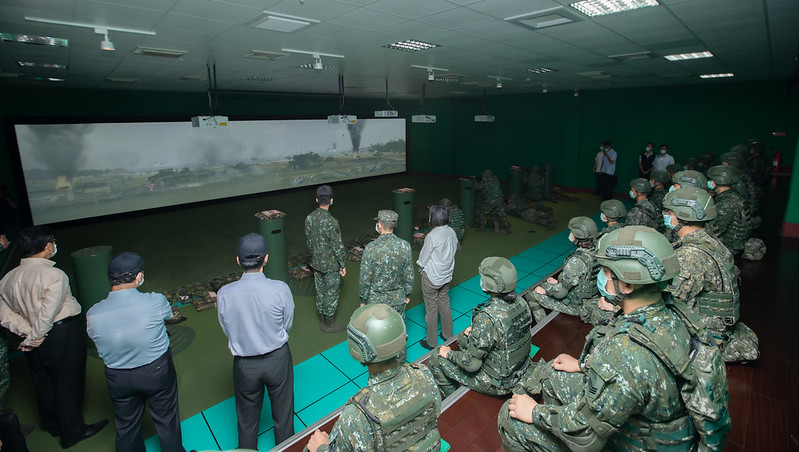 隨後,總統也前往「陸軍步兵訓練指揮部」,視導近接戰鬥基礎訓練及T-91步槍模擬訓練館,並頒發加菜金慰勉部隊官兵辛勞。