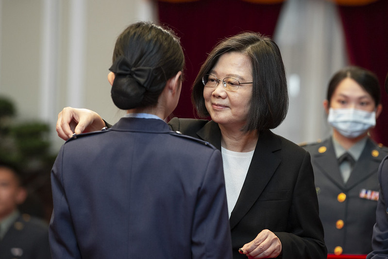 蔡英文總統今(23)日下午在總統府主持「109年三軍六校院授證、授階暨頒獎典禮」,頒發畢業證書、授階予學生代表,及頒獎表揚成績優異的畢業生,期許同學們畢業後發揮最大的信心、勇氣及專業,貢獻所長,讓守護國家安全的團隊力量,變得更強大、更堅強。