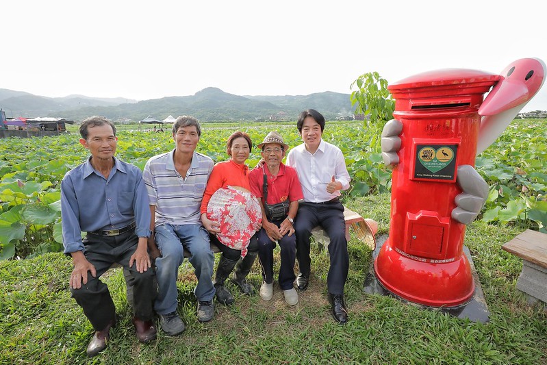 隨後,副總統前往參訪金山「清水蓮花田」,除與攤商親切互動,也品嚐清新爽口的蓮花凍及賞蓮花,現場充滿溫馨的氣氛。