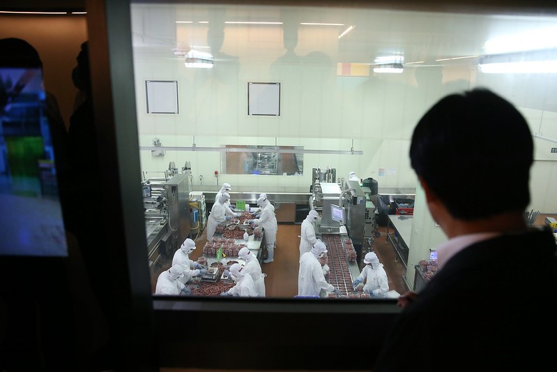 副總統抵達後首先參觀「黑橋牌香腸博物館」,聽取董事長陳春利簡報「黑橋牌歷史及品牌海外推廣」,並參訪工廠了解香腸製作流程及品嚐黑橋牌香腸。