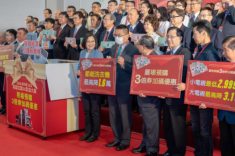 蔡英文總統今(3)日上午出席「第30屆台北電器空調3C影音大展開幕記者會」,說明三倍券已開始開放預訂,很多廠商也都推出各種加碼優惠,希望大家一起加強振興的力道,刺激消費,刺激買氣,讓台灣每一個產業都能用最快的速度恢復元氣。