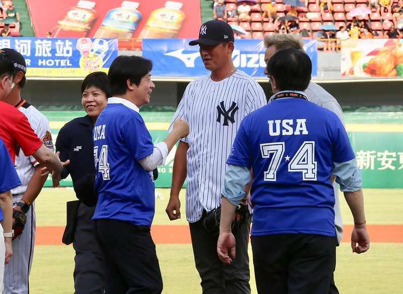 隨後,副總統在AIT處長酈英傑(Brent Christensen)等人陪同下,先進入貴賓室與現場來賓輕鬆互動、寒暄致意;隨後,副總統一行前往球場,與現場球迷揮手致意。