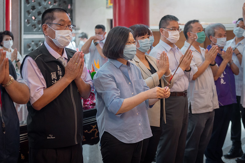 蔡英文總統今(10)日前往南投「草屯紫微宮」、「竹山克明宮」、「社寮紫南宮」及「軍功寮福順宮」參拜,祈求臺灣風調雨順、國泰民安。