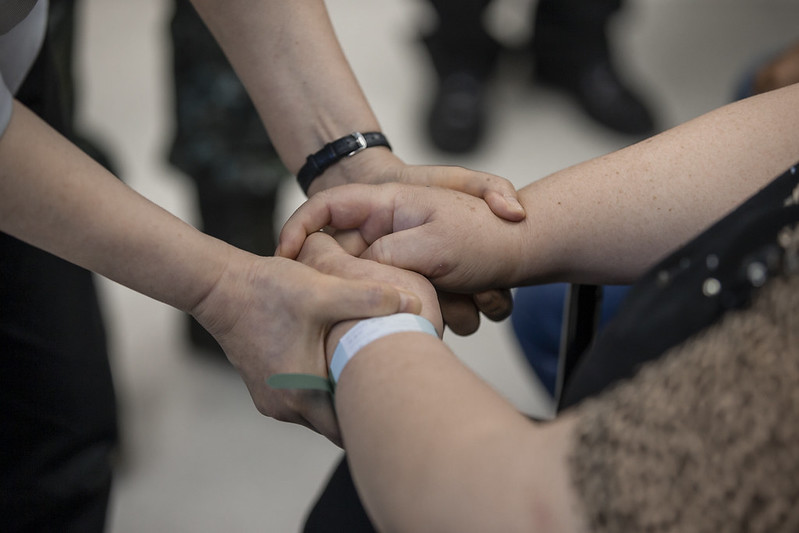 總統抵達國軍新竹地區醫院後,前往本次戰搜直升機意外事故中殉職弟兄靈堂前弔唁,並向家屬深致哀悼之意,請他們務必保重身體。