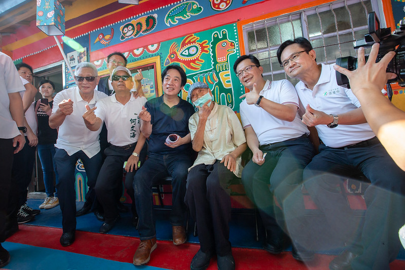接著,副總統前往台中彩虹眷村參訪,與遊客親切互動,受到民眾熱烈歡迎,副總統並沿途觀賞充滿童趣彩繪的巷道。彩虹眷村色彩繽紛的人像、動物與色塊,係由彩虹爺爺黃永阜一手打造,每年吸引許多旅客前往造訪,副總統也親切地與彩虹爺爺合影留念,並呼籲國人可以多多到彩虹眷村參觀。