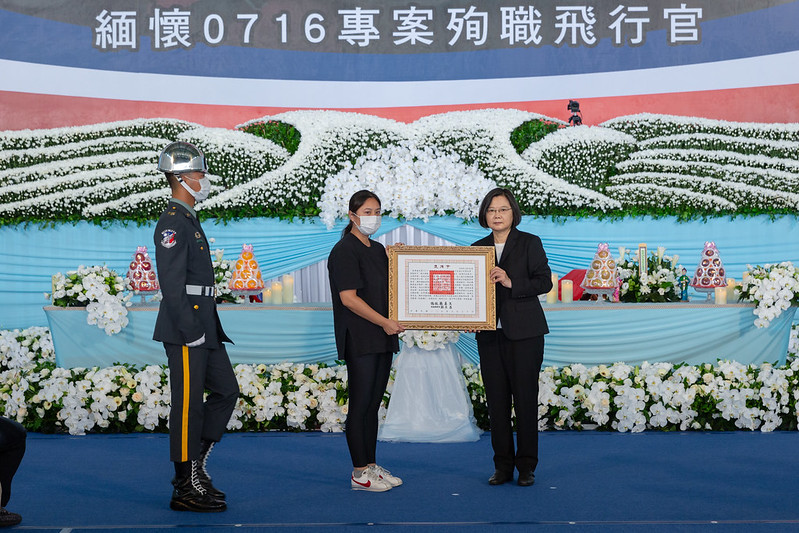 蔡英文總統今(30)日上午前往桃園陸軍航空601旅親頒褒揚令,表彰漢光演習殉職陸軍航空特戰指揮部簡任專中校及高嘉隆少校恪盡職守、捨己為人的英勇奉獻精神。