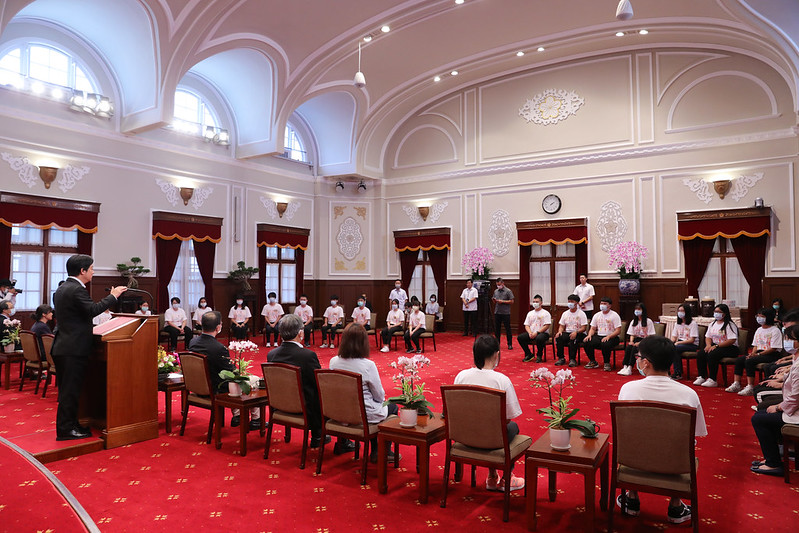 訪賓一行由教育部次長劉孟奇及教育部青年發展署署長羅清水陪同,前來總統府拜會副總統。