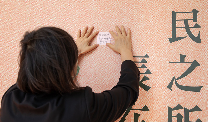 總統與副總統抵達後,於追思會場向李前總統鞠躬並獻花致意。隨後,總統與副總統也親自在追思留言牆貼上追思紙條,總統寫下「民主台灣 有您永恆看顧」;副總統寫下為「衷心感謝 為台灣的貢獻」,感念李前總統對國家社會的卓越貢獻。