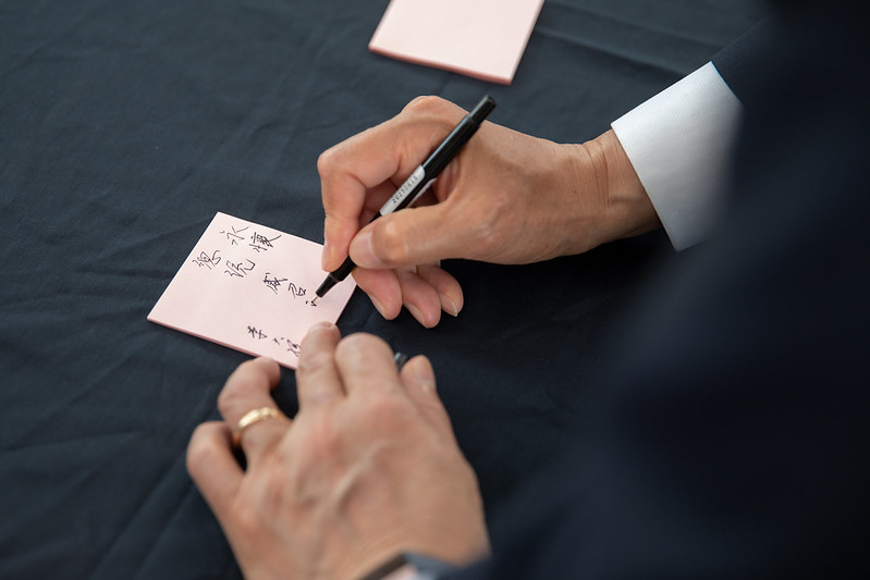 蔡英文總統今(4)日再度前往「李前總統緬懷追思會場」,向李前總統行禮追思,並關心會場調整狀況。除前往增設之祈禱區,也於追思牆觀看民眾留言,並觀看李前總統談話精華片段及李前總統相關書籍文物出版品。