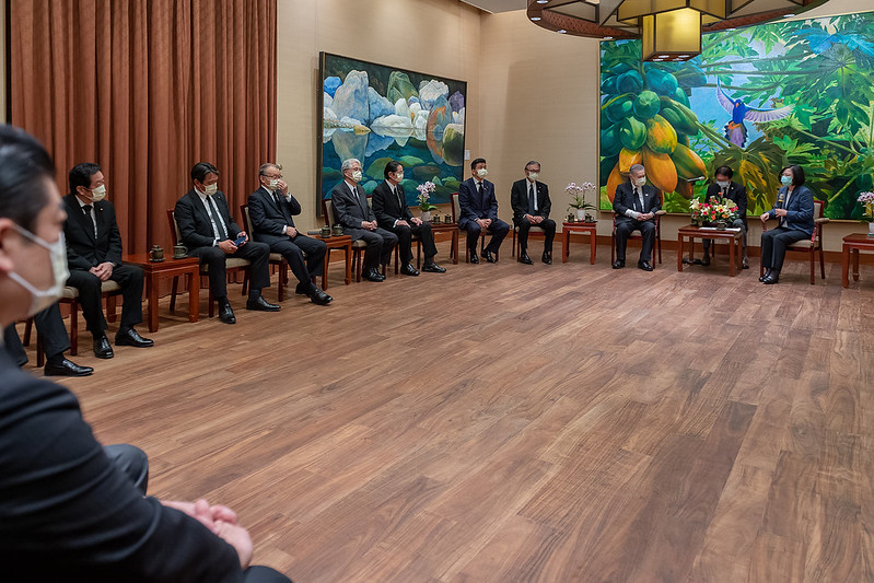 訪賓一行尚包括眾議員富田茂之、中川正春、中山泰秀、長島昭久、參議員榛葉賀津也、石井章、日本台灣交流協會理事長谷崎泰明、台北事務所代表泉裕泰等,由外交部長吳釗燮及「臺灣日本關係協會」會長邱義仁陪同,前來總統府晉見總統,總統府秘書長李大維也在座。