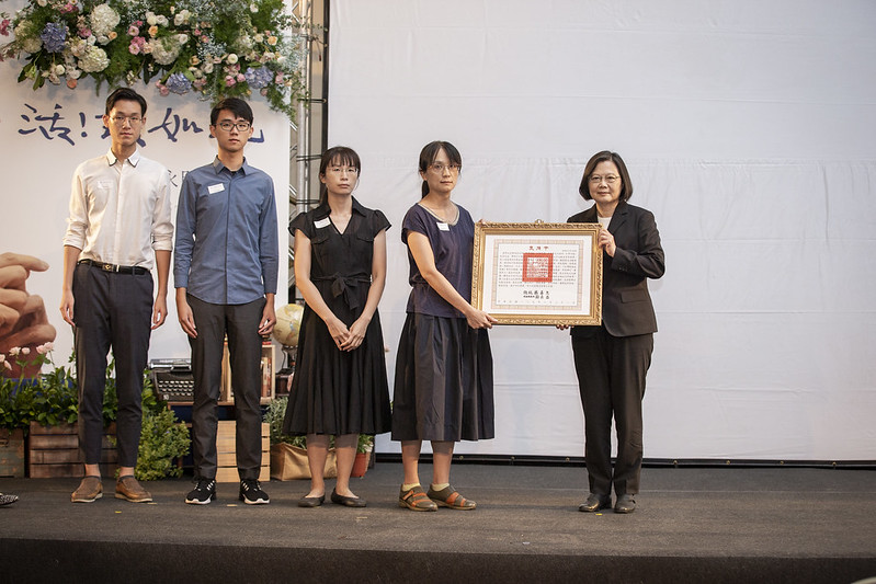總統抵達會場後,首先頒贈褒揚令,由莊老師長女莊樹渟代表接受。