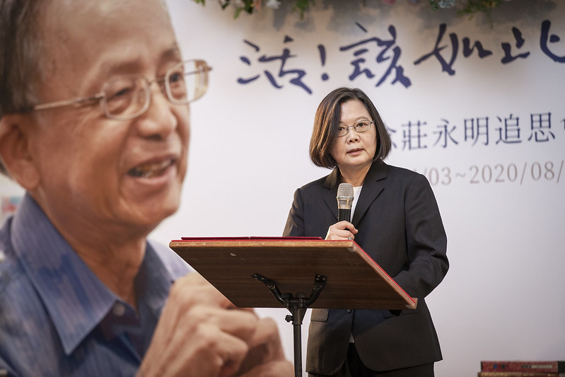 蔡英文總統今(23)日下午前往臺北市中山堂出席「活!該如此 懷念莊永明追思會」,親自頒發褒揚令,表彰文史專家莊永明對傳承及發揚臺灣文化的卓越貢獻。