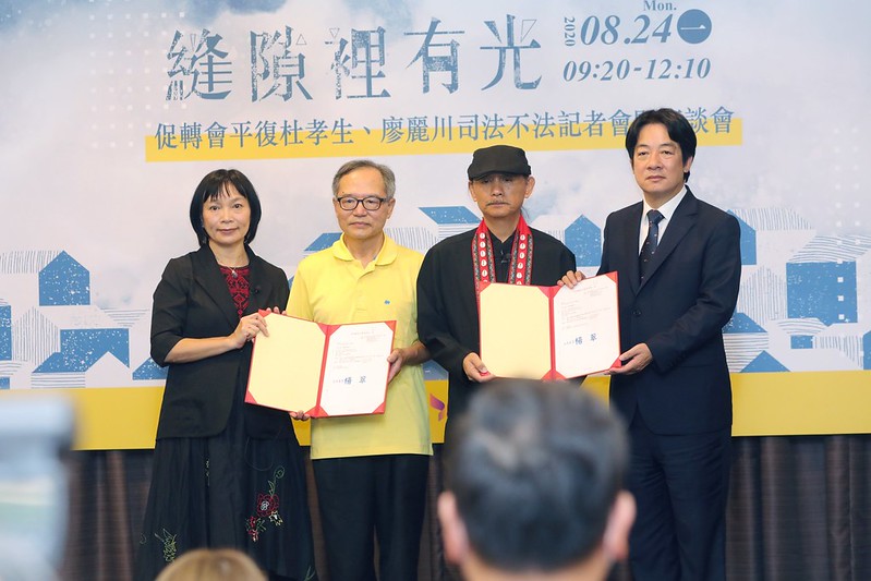 隨後,副總統親致司法不法案件決定書予杜孝生之子杜銘哲與廖麗川之子廖純慶,象徵政府落實轉型正義之決心。