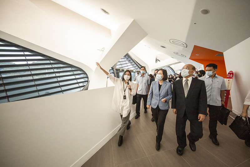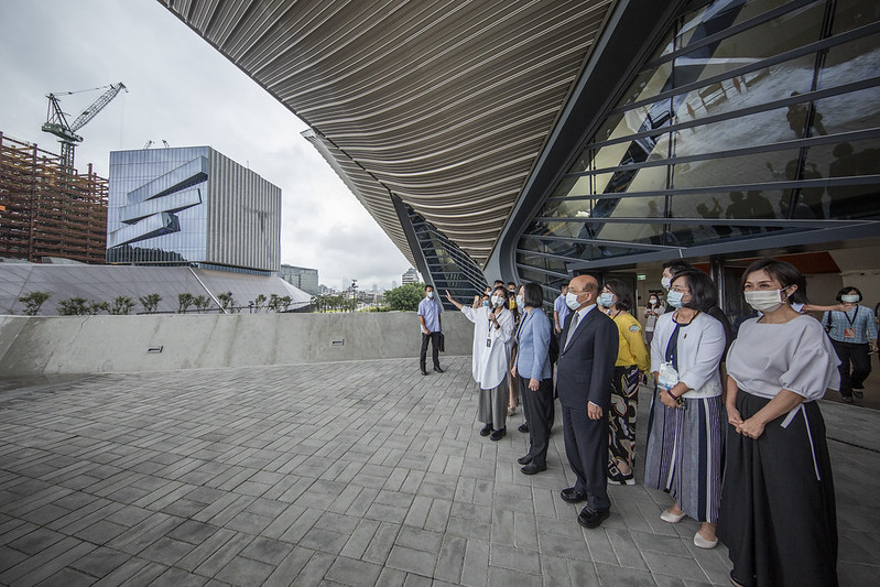 隨後,總統與現場貴賓一同進行啟動儀式、欣賞AR特效,並在主辦單位導覽下,遠眺南基地、瞭解園區規劃及表演廳設備。